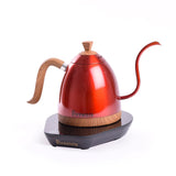 The beautiful wood-look accents perfectly accompany a wide array of colors and finishes. The handy 600 ml capacity heats up quickly. Its narrow gooseneck spout provides amazingly accurate pouring. An ergonomically designed and balanced handle makes it comfortable to use while making perfect pour over coffee!